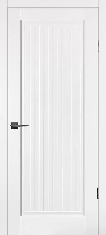 Полотно комплектуется объемной филенкой с фрезерованным рисунком "под рейку". В остекленных полотнах используется рифленное стекло с красивым прокатным узором в виде полос. Отлично смотрится в неоклассических и лофтовых интерьерах.