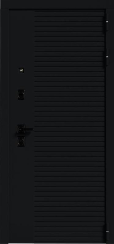 Ручка черная на квадратной планке раздельная стяжная; цилиндр ключ/вертушка, независимая ночная задвижка, глазок над замковой группой.